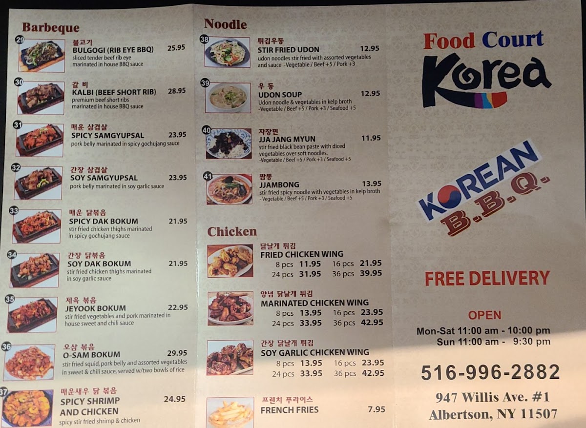 Located at 947 Willis Ave, Food Court Korea is easily accessible and presents an inviting atmosphere that feels like a funky, converted pub. While the building might carry a hint of mustiness on rainy days, the aroma of sizzling barbeque and rich spices fills the air, drawing you in. The ambiance is friendly and welcoming, making it an ideal place for families, friends, or solo diners looking to immerse themselves in a dining experience that reflects the true spirit of Korea.